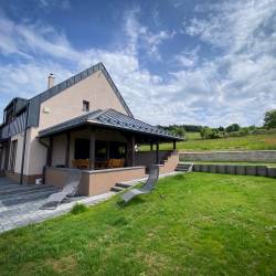 Exteriér tvorí terasa so sedením s možnosťou grilovania na plynovom grile či opekania na ohnisku. Deti sa potešia ihrisku s trampolínou. Pod chatou sa nachádza priestranné parkovisko pre 4 autá.