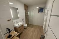 V apartmáne sa nachádza jedna spálňa s extra veľkou manželskou posteľou a kúpeľňa s walk-in sprchovacím kútom, fénom a WC.