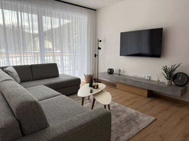 Ubytovanie ponúka apartmán Deluxe s 1 spálňou a s výhľadom do záhrady s kapacitou pre 4 osoby. Jeho interiér je moderný a presvetlený s otvorenou obývacou izbou, kde sa nachádza rozkladací gauč, LCD TV so streamovacími službami a balkón s výhľadom do záhrady. V otvorenom priestore je aj plne vybavená kuchyňa s okrúhlym jedálenským stolom. K oddychu využijete spálňu s extra veľkou manželskou posteľou a k osvieženiu modernú kúpeľňu s walk-in sprchovacím kútom, fénom na vlasy a WC. Pre deti je k dispozícii detská postieľka bez príplatku. Apartmán má priestor na úschovňu lyži. V objekte je dostupné wifi pripojenie.