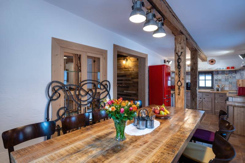 Ubytovanie ponúka maximálnu kapacitu 10 lôžok. Vnútri chalupy vás privíta útulná atmosféra. Priestranná obývacia izba s pohodlnými pohovkami ( 1x rozkladacia ), TV so satelitom a pieckou je centrom chalupy. Vedľa obývačky sa nachádza plne vybavená kuchyňa so všetkým potrebným pre prípravu jedál. Veľký jedálenský stôl z masívneho dreva je ideálny na spoločné obedy či večere. Chalupa ponúka dve 2-lôžkové spálne a jednu 4-lôžkovú s prístelkou. Pre maximálne pohodlie, každá spálňa má vlastnú kúpeľňu. Objekt má podlahové kúrenie, kde vykurovanie je zabezpečené plnoautomatickým kotlom na pelety, takže v zime budú vaše nohy vždy príjemne teplé a vy si môžete užívať komfort aj počas najchladnejších dní. V ubytovaní je zabezpečené wifi pripojenie.