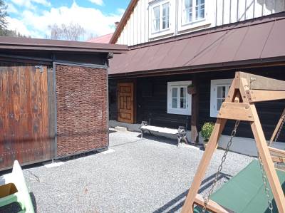 V exteriéri sa nachádza altánok so sedením , kaďa s vírivkou, grilom, ohniskom a 22 litrovým kotlíkom na varenie guláša. Parkovacie miesta pre tri autá sú hneď pri objekte. Dostupná je aj úschovňa na bicykle a lyže so sušičom na lyžiarky.