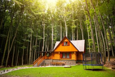Exteriér ponúka terasu so sedením, ohnisko, gril a kotlík. Pripravená je trampolína a detské ihrisko s pieskoviskom. Parkovanie je možné priamo pri objekte.