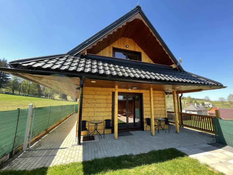 Exteriér ponúka altánok so sedením, vonkajším krbom, ohniskom a kotlíkom na varenie guláša. Lyže či bicykle si bezpečne odložíte v technickej miestnosti. Na upravenej záhrade si môžete zahrať futbal či volejbal. Autá zaparkujte priamo pri ubytovaní na 4 parkovacích miestach.