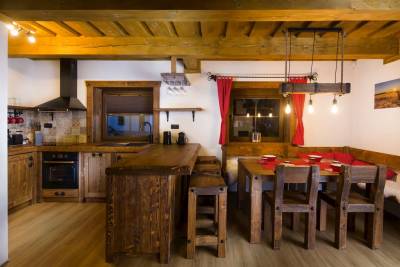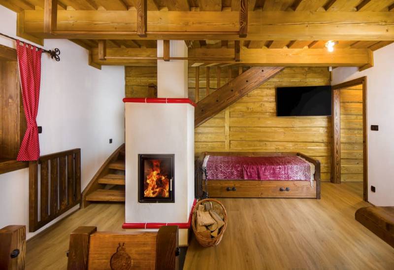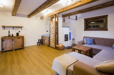 Ubytovanie s dôrazom na tradičné prvky má celkovú kapacitu pre 21 osôb, ktoré je možné prenajať ako celok alebo ako jednotlivé apartmány, každý s kapacitou pre 9 osôb. Každý apartmán disponuje obývačkou, kde dominuje krb. Okrem toho sa tu nachádza rozkladacie sedenie a LCD TV. Rustikálna kuchyňa je plne vybavená modernými spotrebičmi vrátane kávovaru na kapsule Nespresso. Nočná časť pozostáva z 2 spální s manželskými posteľami a prístelkami. Nechýba samostatná toaleta a kúpeľňa so sprchovacím kútom, bidetom a WC. Spoločné chvíle strávite v suteréne v spoločenskej miestnosti, kde je gauč, krb, LCD TV a detský kútik. V spoločných priestoroch je aj ďalšia samostatná toaleta a kúpeľňa so sprchovacím kútom a práčkou. V objekte je dostupné wifi pripojenie.