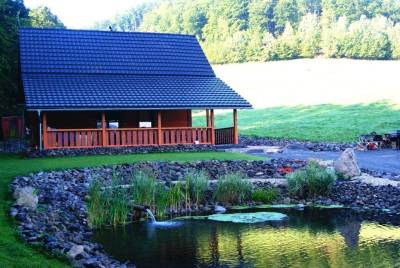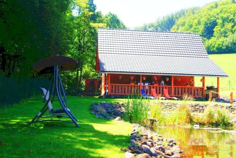 V exteriéri vás čaká terasa so sedením, ktorá je zastrešená. V letných mesiacoch si tu môžete grilovať, opekať a variť guláš. Súčasťou je záhradná hojdačka pri jazierku so pstruhmi. Deti čaká detské ihrisko vybavené trampolínou a hojdačkou. Parkovanie vozidiel je možné pri chate.