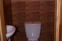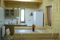 Prízemie chaty tvorí obývacia izba s gaučom, ktorý poskytne jedno lôžko na prenocovanie, kachľovou pecou, LCD TV so satelitom, rádiom a CD prehrávačom. Vedľa sa nachádza plne vybavená kuchyňa s jedálenským sedením, plynovým sporákom s elektrickou rúrou, rýchlovarnou kanvicou, chladničkou a mikrovlnnou rúrou. Nechýba tu samostatná toaleta a kúpeľňa so sprchovacím kútom.