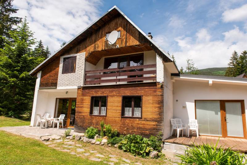 V exteriéri sa nachádza terasa a altánok so sedením. K dispozícii je gril, kotlík a ohnisko. Pripravená je trampolína, pieskovisko s hračkami, hojdačky a pingpongový stôl. Parkovanie je možné priamo pri objekte.