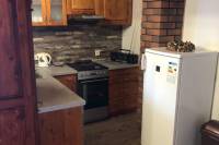 Vo vedľajšej miestnosti sa nachádza kuchyňa vybavená chladničkou s mrazničkou, elektrickou rúrou so sporákom, mikrovlnkou a rýchlovarnou kanvicou.