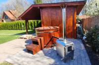 V exteriéri na veľkom trávnatom pozemku si zahráte bedminton a iné športy. K dispozícii sú vám bicykle na zapožičanie. Taktiež si posedíte na terase a ugrilujete, opečiete chutné špeciality alebo uvaríte guláš. Pre deti je pripravená detská hojdačka. Za príplatok 100 € / pobyt môžete využiť aj fínsku kaďu (hot tub), ideálnu na relax počas celého roka. Parkovať môžete pri chate.