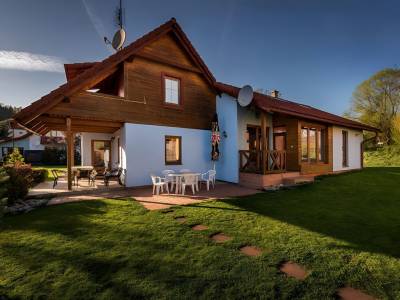 Exteriér tvorí veľká záhrada s altánkom, kde nájdete gril, kotlík, vonkajší krb a ohnisko. K dispozícii je aj výčapné zariadenie na čapované pivo. Skvelý relax si môžete užiť vo vonkajšej kúpacej kadi. Deti poteší ihrisko s pieskoviskom, trampolínou, šmykľavkou a hojdačkami. Pobyt si môžete spríjemniť hraním stolného tenisu, basketbalu či futbalu na mini ihrisku a loptové hry. Pri objekte je 7 parkovacích miest. Akákoľvek hudba v exteriéri je zakázaná počas celého dňa.