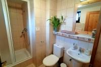 Kúpeľňa je so sprchovacím kútom a toaletou.