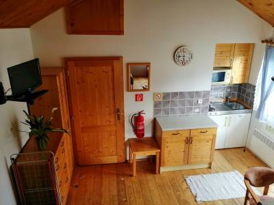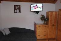 Obývací priestor je s gaučom, TV a rozkladacou pohovkou, ktorá slúži ako prístelka pre 2 osoby.