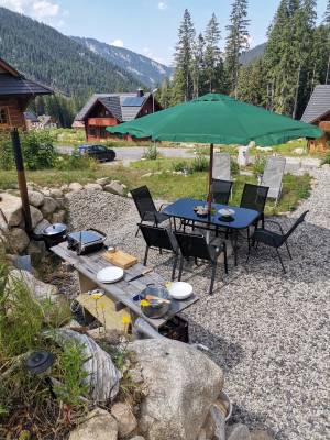 V exteriéri je možné pri objekte zaparkovať až 5 automobilov s možnosťou dobiť si elektromobil s vlastnou autonabíjačkou cez dve zásuvky na 230V /16A. Hostia majú k dispozícii aj lyžiareň so sušičom lyžiarok.